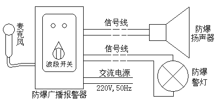 5.防爆揚聲器和防爆警燈應(yīng)安裝在距離防爆廣播報警器50米以內(nèi)的地方。超過50米應(yīng)適當(dāng)增加連線的截面積,最多不能超過100米。
